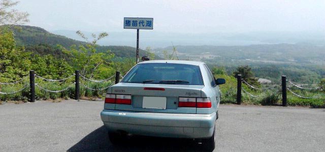 海抜800mの見晴らし台で猪苗代湖を望んで撮影。因みに峠のサミットは海抜1200mでした。