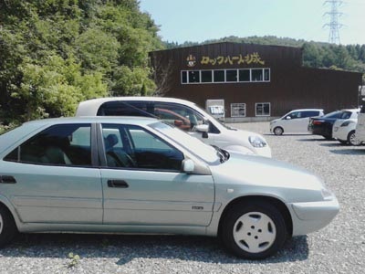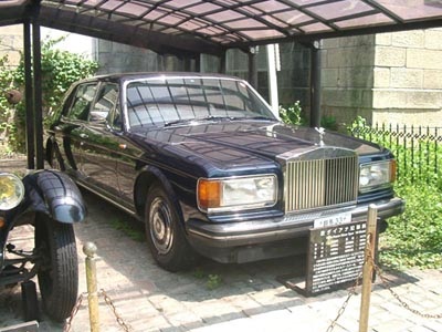 建物の脇に車が2台。ロールスは元英国大使館の公用車。