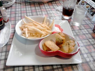 頂きました。ここのは魚(タラ)フライがコマ切れですが、