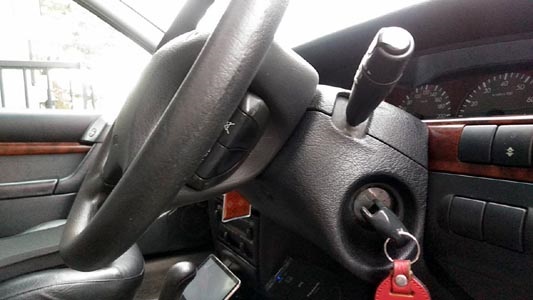 昨年革シートをリペアした時に施工された「ワッツ・クイックサービス」さんから、ハンドル・リペアの提案を頂きました。 |