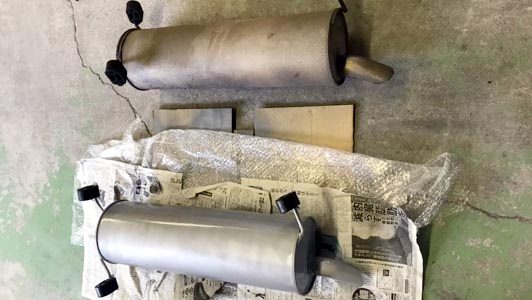エンドマフラーの新旧。上が旧品です。