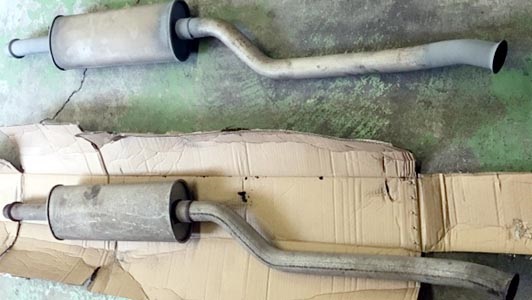 新品エンドマフラーを持ち込んで挑んだ訳ですが、作業の過程でセンターマフラーの中も粉々である事が判明(予測はしていた)。