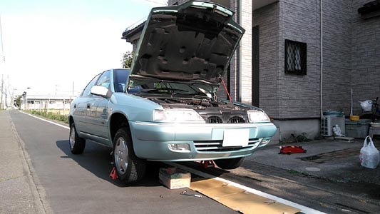 ![]() 昨冬は一回も威力を発揮しなかったスタッドレスタイヤから夏タイヤへチェンジ。 フロント側ジャッキポイントだけで、前後一緒に交換出来るのがハイドロの利点。 |
