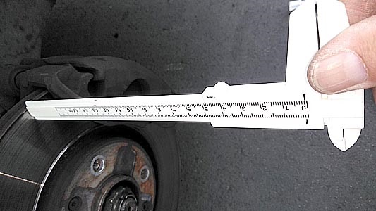 ![]() ノギス(100均商品)で減り具合を測りました。アウター側は1mm。 インナー側は目視では減ってません。ローターもパッド同様警戒対象にしました。 |