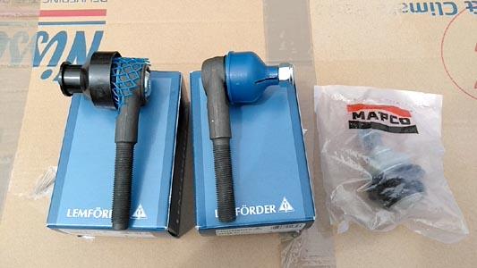 ![]() 足回りパーツ。左右のタイロッドエンドとボールジョイント。 どちらも耐用期限越えで交換します。 |
