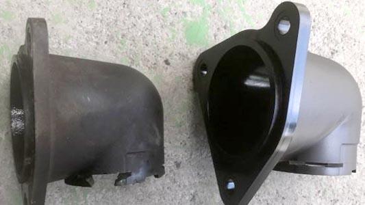 ![]() 作業の様子A 冷却系パーツは永年に渡るお湯の攻撃と経年で樹脂が劣化。 サーモスタット・ハウジングも例外ではありませんでした。はい、交換。 |