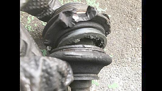 ![]() 作業の様子B ボールジョイントは春の時点でブーツ切れを確認していました。 これでは9月の車検は通りません。 |
