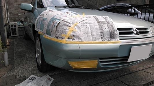 ![]() 実は6月の出来事だったのですが、せっかく写真撮ったので掲載。 以前のオーナーのバンパー補修跡のクリアーが剥がれた為、再塗装です。 |