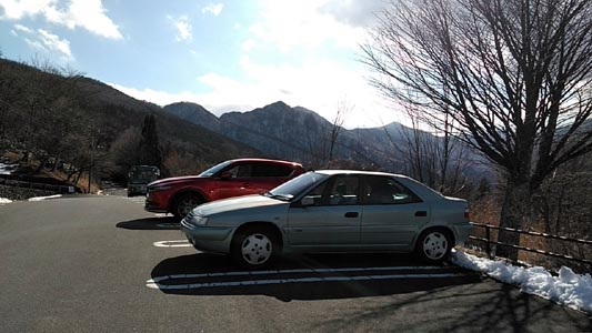 ![]() 駐車場の別アングル。奥の山々(雲取山)が、東京都との都県境あたり。 |