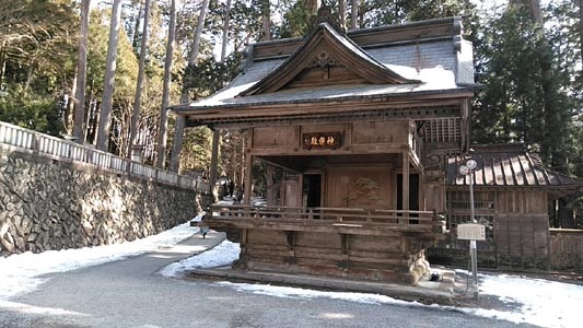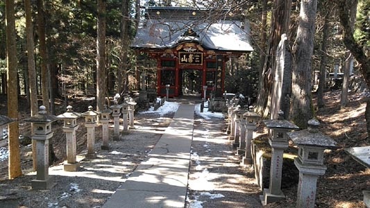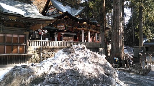 ![]() 車から降りた後は神社まで徒歩(大体1キロ)。ところどころ雪が残ってました。 |
