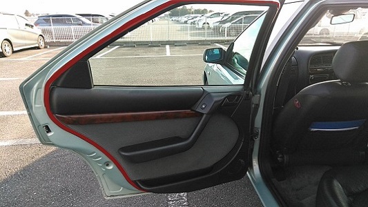 ![]() <2020年1月@>雨漏りトラブルはとうとう年を跨いでしまいました。 以前より周囲の方々より指摘のあった「ウェザーストリップの劣化」の対策をする 事にしました。助手席側前後のドア内側に家庭用すき間風テープを貼り、ドアと ウェザーストリップの密着度を高めようとする方法です。 写真の赤色部分がすき間風テープ。これで一安心。 が、結局密着度が落ちすき間風の音が車内に浸入し大失敗。 |