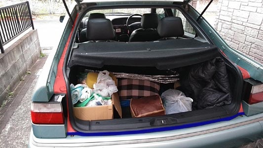 ![]() <2019年10月@>昨年は台風の超当たり年。千葉県を壊滅させた15号と、 埼玉にも恐怖をもたらした19号。ウチは紙一重で助かったクチ。 当然ソライロ号もただ事ではなく、排水の為にとうとうフロアカーペットに切込み を入れ、直接雨水をかき出す事にしました。 |