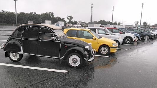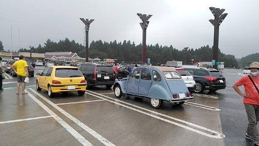 ![]() 私は敢えてやっていないけど、LINE繋がりのコミュニティーだそうです。 黒の2CVは遠く宮城からの参加。黒はトヨタ・センチュリー用の塗色だそうです。 |