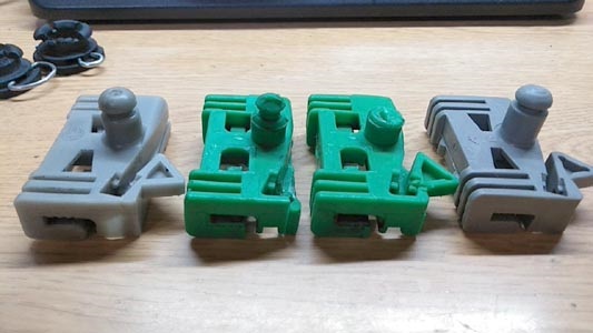 ![]() 下井草に急行して入手したスライダー(一番右)。初代〜3代目と並べました。 4代目はまだクルマの中です。一番左が純正品。他が社外品。社外品は全部 耐久性が低めです。尚、純正品は元々スライダー単品設定が無かったみたい。 純正レギュレーターASSYはさぞかし高価だったでしょうね。 |