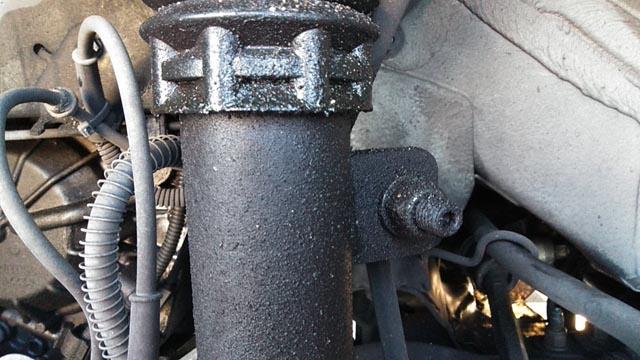 ![]() シリンダーブーツ、隣接のスタビリンクロッドにもLHMが付着し、更に埃が吸着してムゴイ事に。 |
