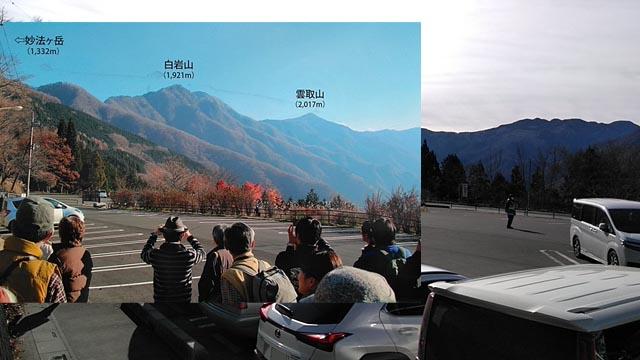 ![]() 回答。上の写真に観光案内の看板の画像を重ねてみました。雲取山が都県境です。 |