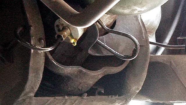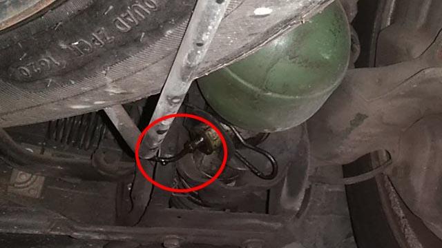 ![]() 後輪周辺だと大体漏れる傾向が解っているので、光を当てて探したら即漏れ箇所が判明。 |