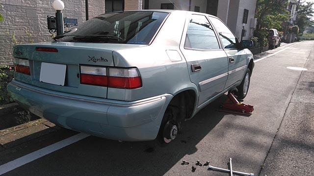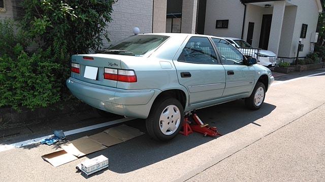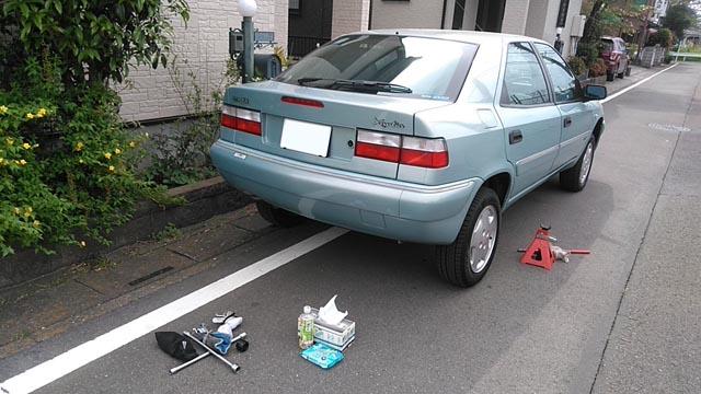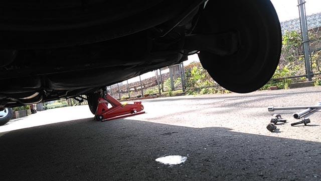 ![]() 漏れた翌々日、自宅前で路上整備開始! |