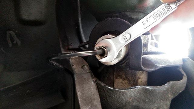 ![]() ジョイントをスパナで回し漏れを止めにかかります。但し回し過ぎるとジョイントを破損するカモ なので、慎重に・・・。結局回した量は”こじる”程度でした。 |