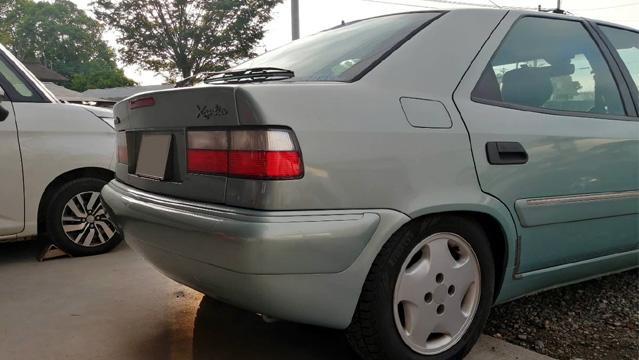 ![]() 作業途上の様子。この時点では保険修理対象のリアバンパーのみ仕上がっています。 この後オールペン作業に入りました。 |