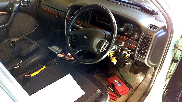 ![]() 車内は修理中の為アチコチ外されてました。 |