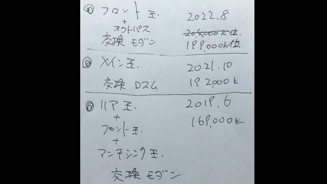 ![]() このメモは過去のスフェア交換を書き出したもの。 リア玉はフロント玉と一緒に5年以上前に交換してます。 フロント玉はその3年後に交換ですから寿命半分。 エンジンの重みを支えているので仕方ない。 |