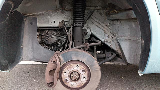 ![]() 2021年春以降油漏れの助手席側。ストラット左側の丸いのはAT本体。 LHM漏れは湿り具合から鑑みて相変わらずビミョーな感じですね。 |