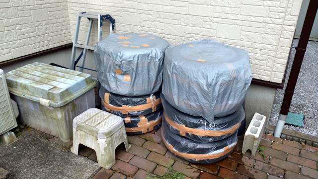 ![]() 乾燥後一本づつ包んで車庫に安置。 包まないとダンゴ虫の巣になります! 次シーズンで使う前に掃除が必要になって面倒になります! |